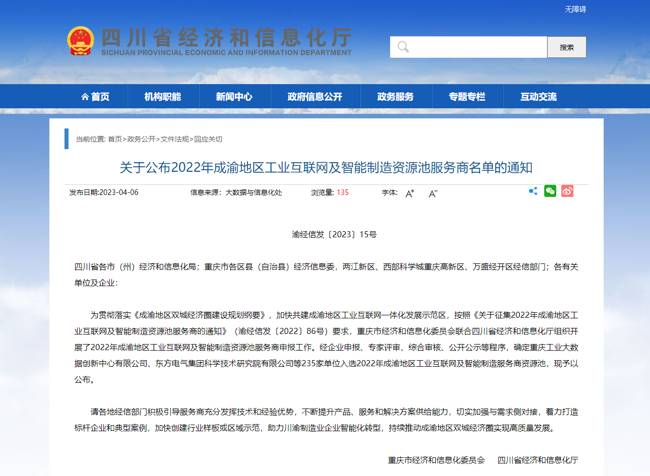 2023年4月6日,重慶市經(jīng)濟(jì)和信息化委員會聯(lián)合四川省經(jīng)濟(jì)和信息化廳公布,為貫徹落實(shí)《成渝地區(qū)雙城經(jīng)濟(jì)圈建設(shè)規(guī)劃綱要》,加快共建成渝地區(qū)工業(yè)互聯(lián)網(wǎng)一體化發(fā)展示范區(qū),按照《關(guān)于征集2022年成渝地區(qū)工業(yè)互聯(lián)網(wǎng)及智能制造資源池服務(wù)商的通知》(渝經(jīng)信發(fā)〔2022〕86號)要求,重慶市經(jīng)濟(jì)和信息化委員會聯(lián)合四川省經(jīng)濟(jì)和信息化廳組織開展了2022年成渝地區(qū)工業(yè)互聯(lián)網(wǎng)及智能制造資源池服務(wù)商申報工作。經(jīng)企業(yè)申報、專家評審、綜合審核、公開公示等程序,康碩(德陽)智能制造有限公司入選2022年成渝地區(qū)工業(yè)互聯(lián)網(wǎng)及智能制造資源池服務(wù)商單位名單。