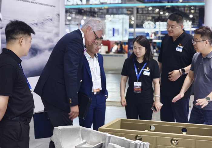 展位前,眾多行業(yè)知名企業(yè)代表、專家學(xué)者和技術(shù)人員對(duì)我司展品的鑄造工藝、流程、技術(shù)、發(fā)展等問(wèn)題進(jìn)行探討。
