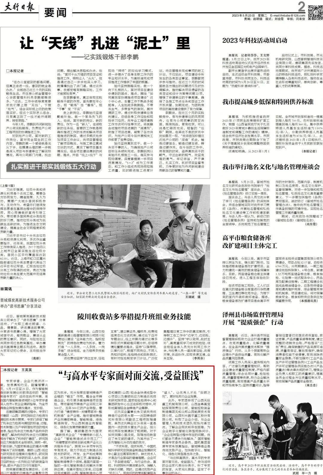 5月23日,《太行日報(bào)》刊登了題為“與高水平專家面對面交流,受益匪淺”的文章,詳細(xì)介紹了康碩集團(tuán)作為典型企業(yè)在智能制造創(chuàng)新發(fā)展論壇“智能制造專家行”活動中的重要角色。作為本次專家調(diào)研的焦點(diǎn),康碩集團(tuán)以其卓越的關(guān)鍵零部件智能制造解決方案得到了專家們的高度贊賞。這次交流不僅為康碩集團(tuán)帶來了專家們寶貴的建議和見解,也進(jìn)一步堅(jiān)定了康碩集團(tuán)在制造業(yè)領(lǐng)域的深耕細(xì)作的決心。