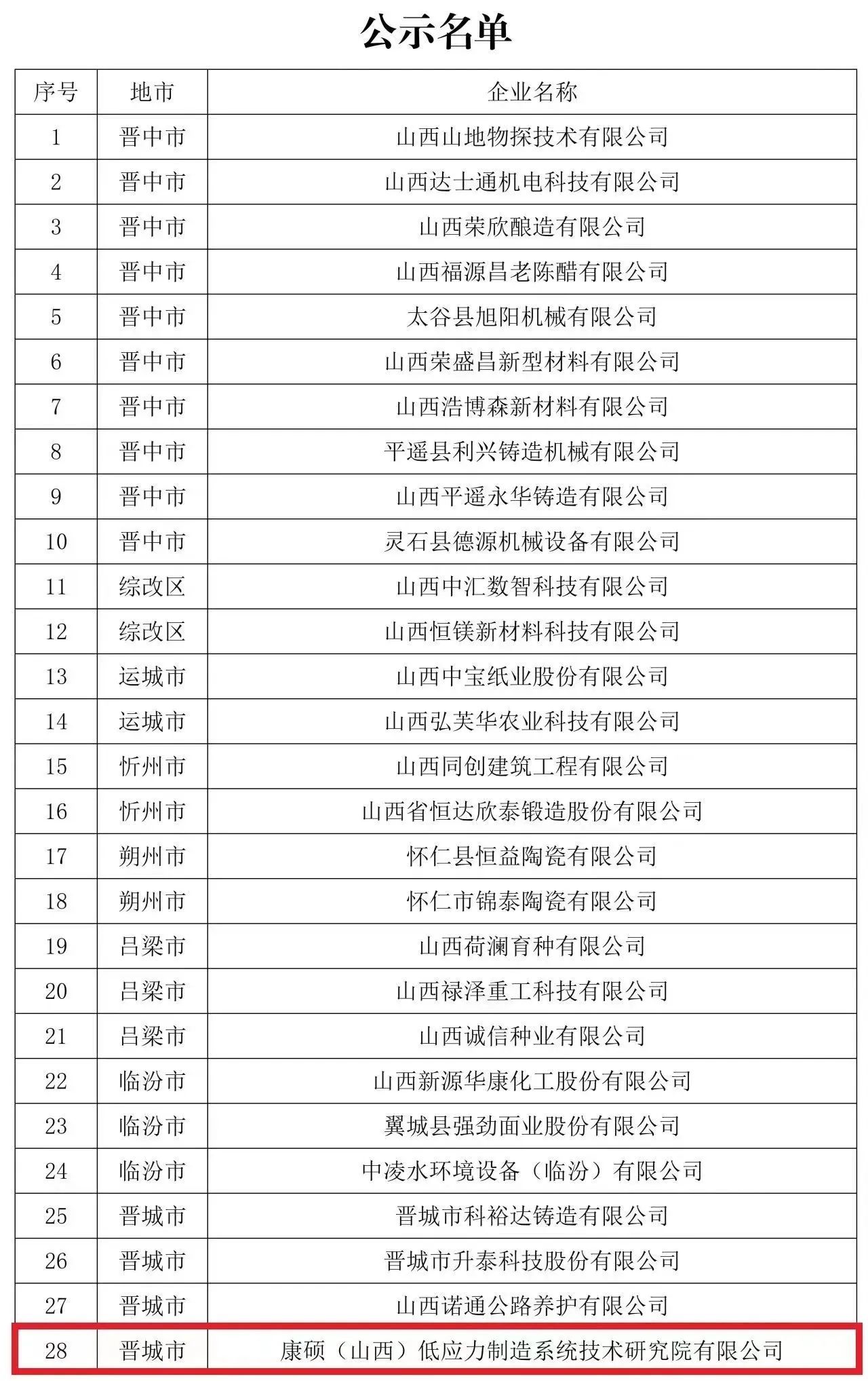 近日,山西省小企業(yè)發(fā)展促進局對2023年惠企政策獎補名單進行了公示。其中,擬對我司“康碩(山西)低應力制造系統(tǒng)技術研究院有限公司”予以“來山西注冊經(jīng)營”資金獎勵。
